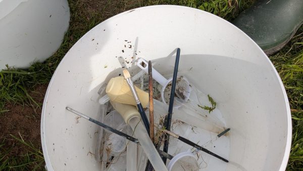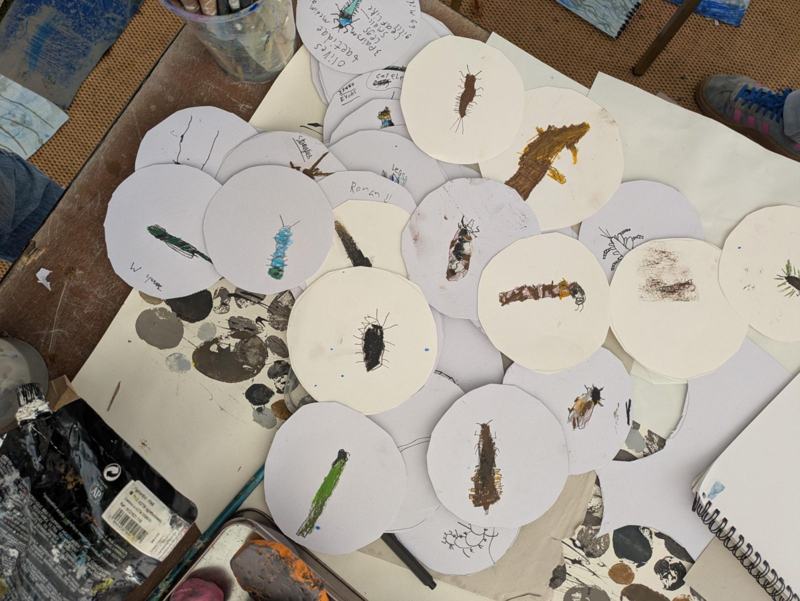 We experimented with “crayon resist art” and “oil pastel” techniques. Young Science festival goers made a collection of “petri dish art” samples - taking a closer look at the invertebrates that are plentiful in our river - a good sign for the Sid.