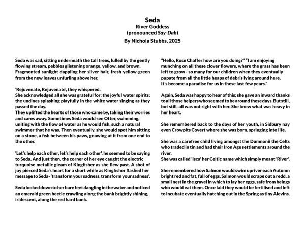 The exhibition also includes Seda, River Goddess by Nichola Stubbs, a new story , which creatively captures the essence of the project.